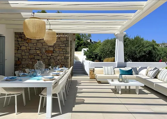 Примерно в 2 км находится ресторан Buddha Bar Beach Mykonos. До аэропорта Миконос можно добраться за 10 мин на автомобиле.